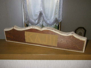 まわりをルーターで面取り加工後、オイルステインとアクリルで仕上げたもの。名前の部分はローマ字で・・