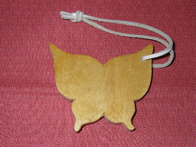 蝶ちょ型に切り抜きました。ニス塗りして仕上げました。